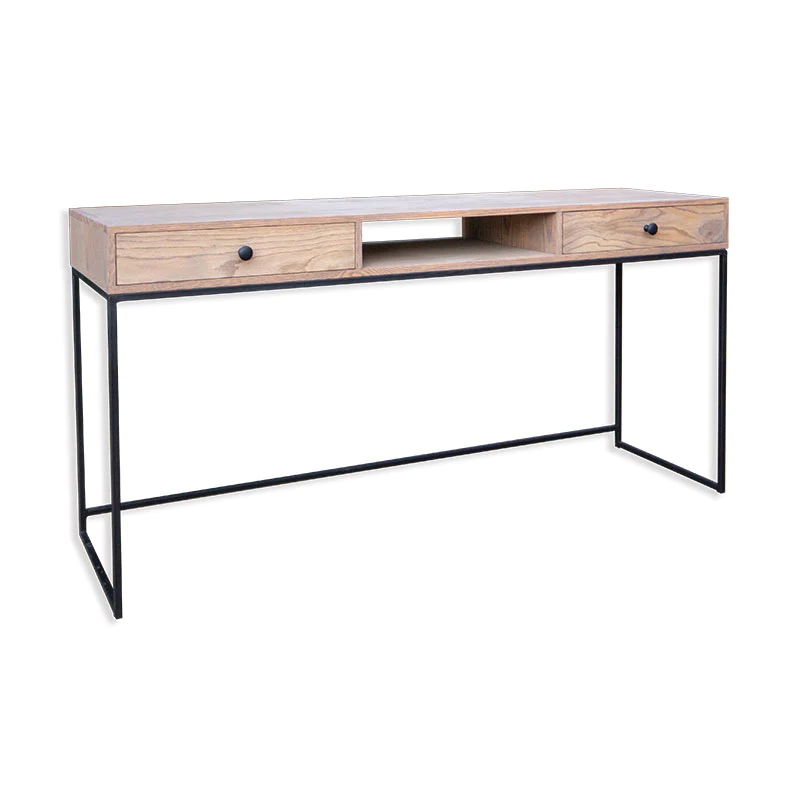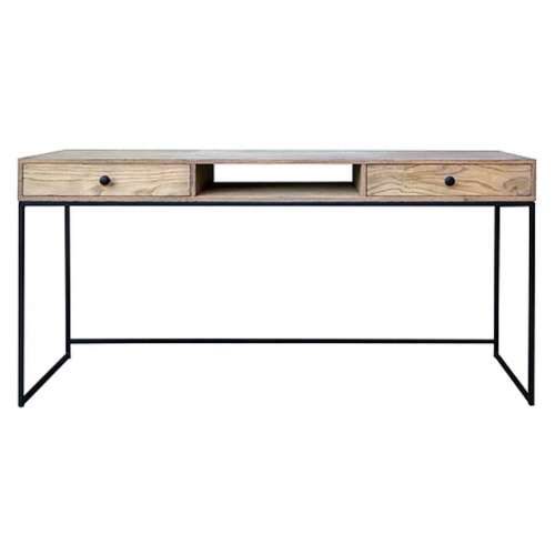 It has a steel frame (16mm) and oak top (16mm) with two drawers.