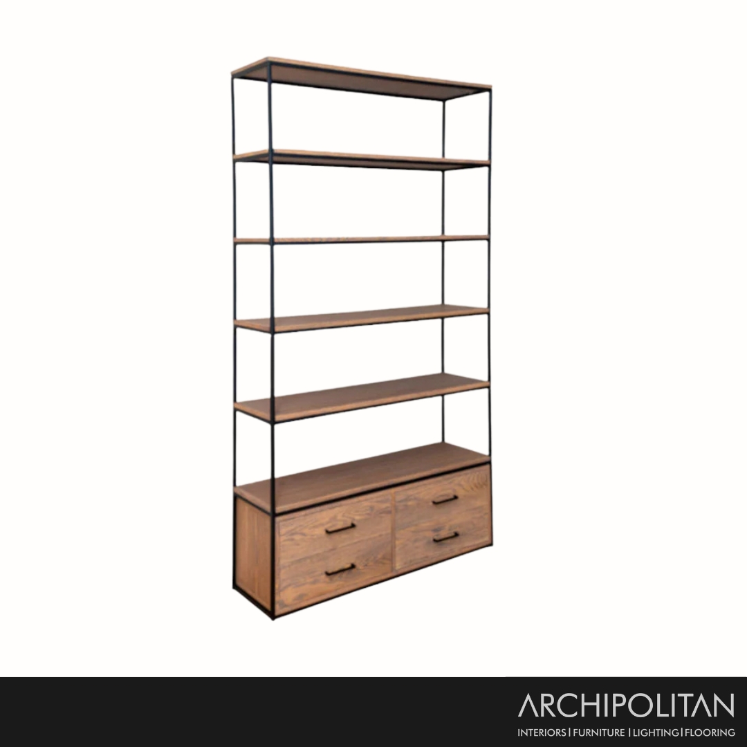 Bookshelf with 4 drawers for office, lounge, dining or bedroom use.