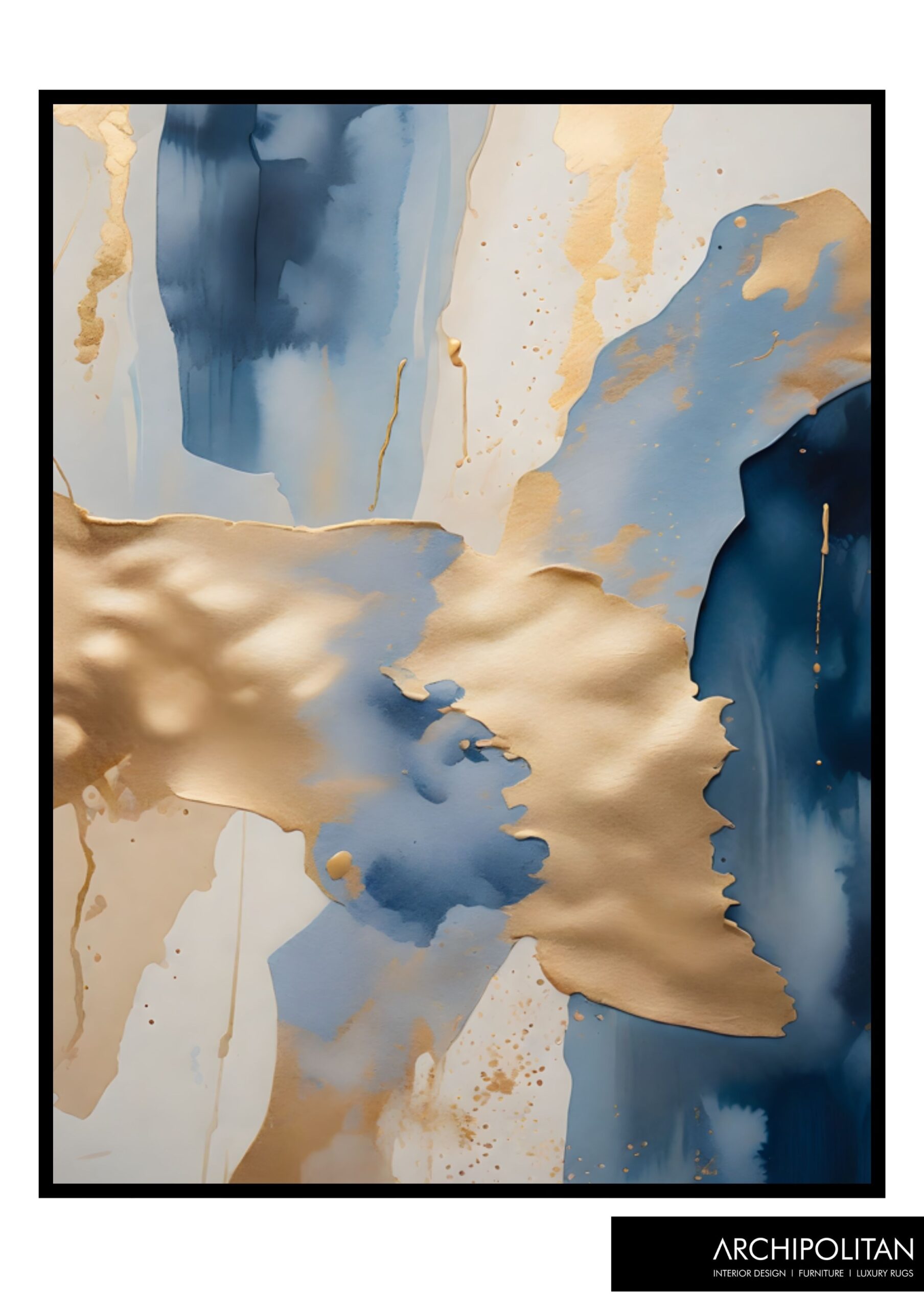 Framed Canvas Print – Abstract Blue & Gold – 5