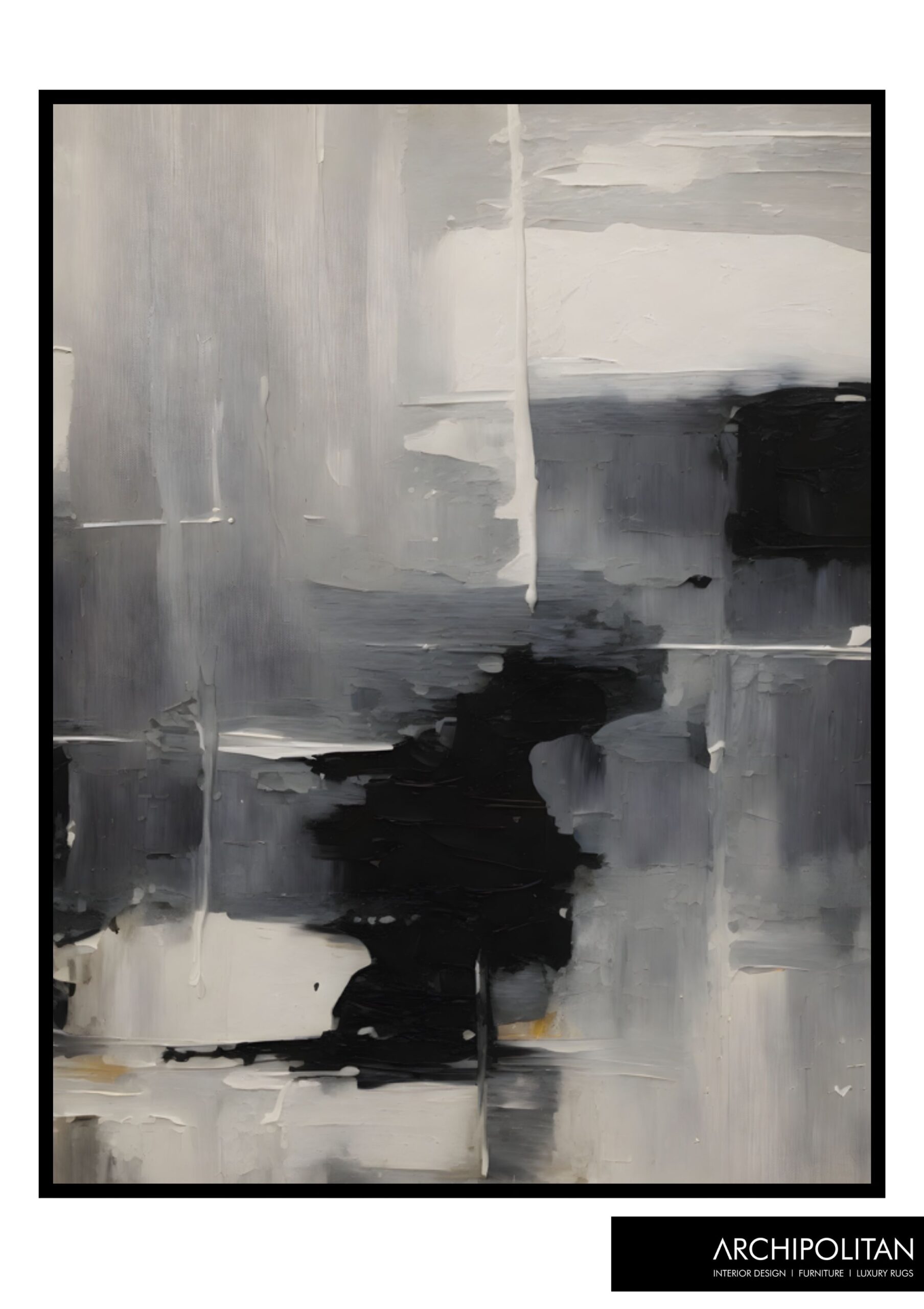 Framed Canvas Print – Black And Grey Line Abstract 2