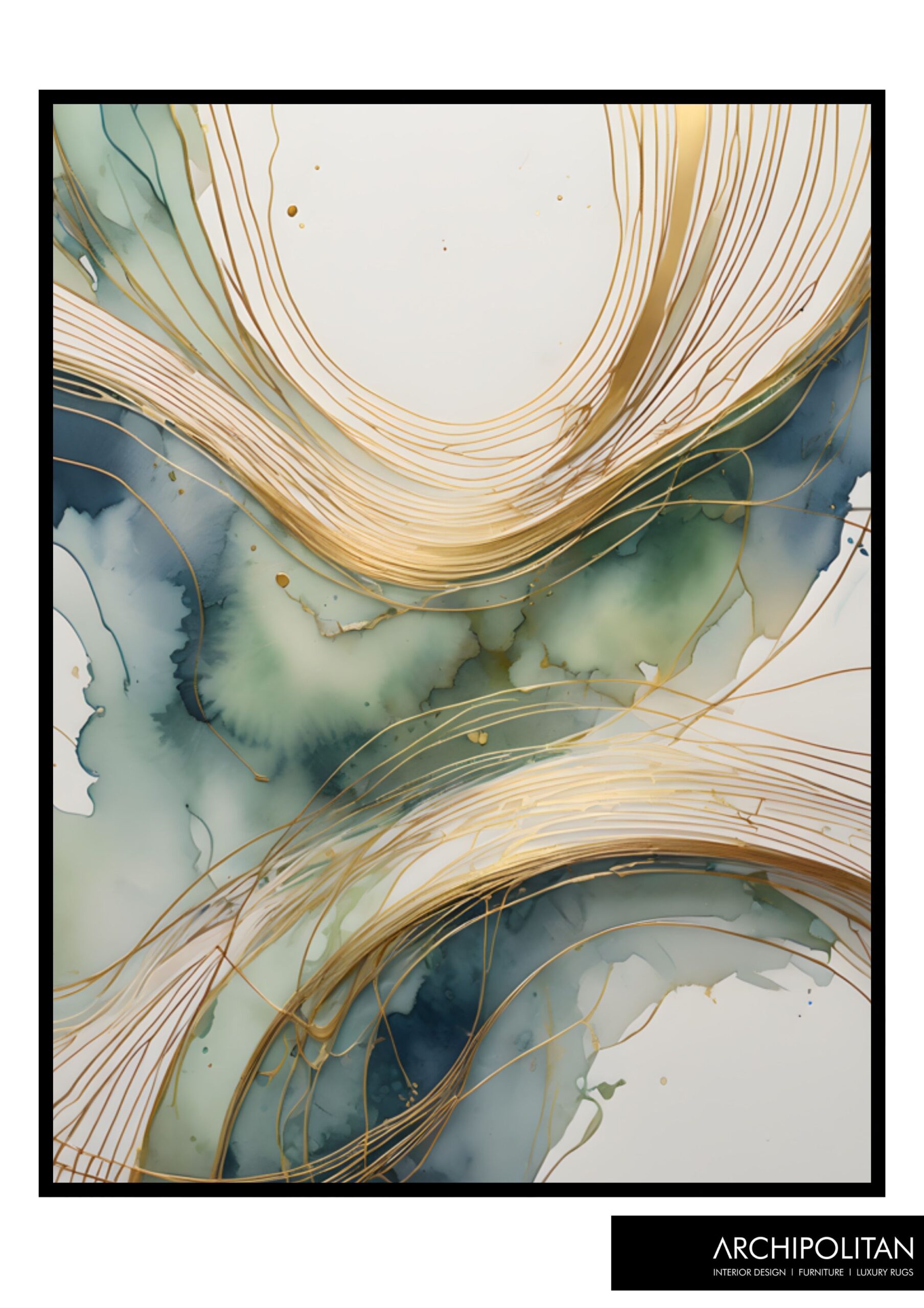 Framed Canvas Print – Green Water Colour With Metallic 3