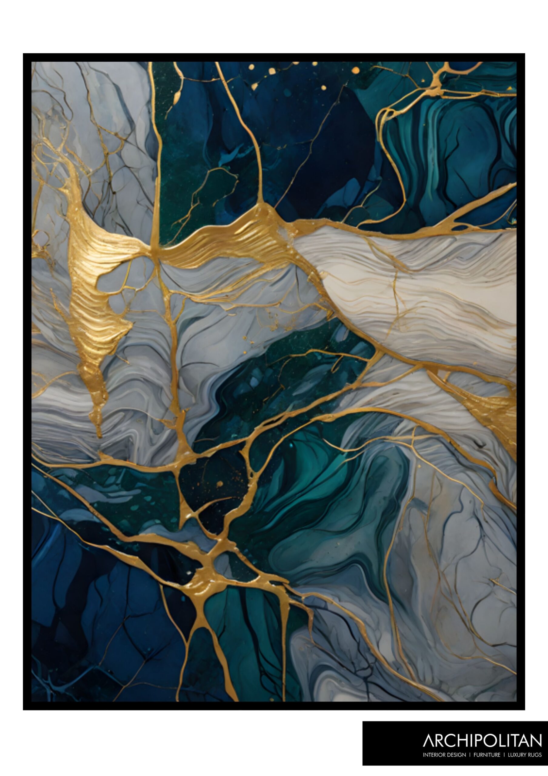 Framed Canvas Print – Navy, Green & Gold Marble 10