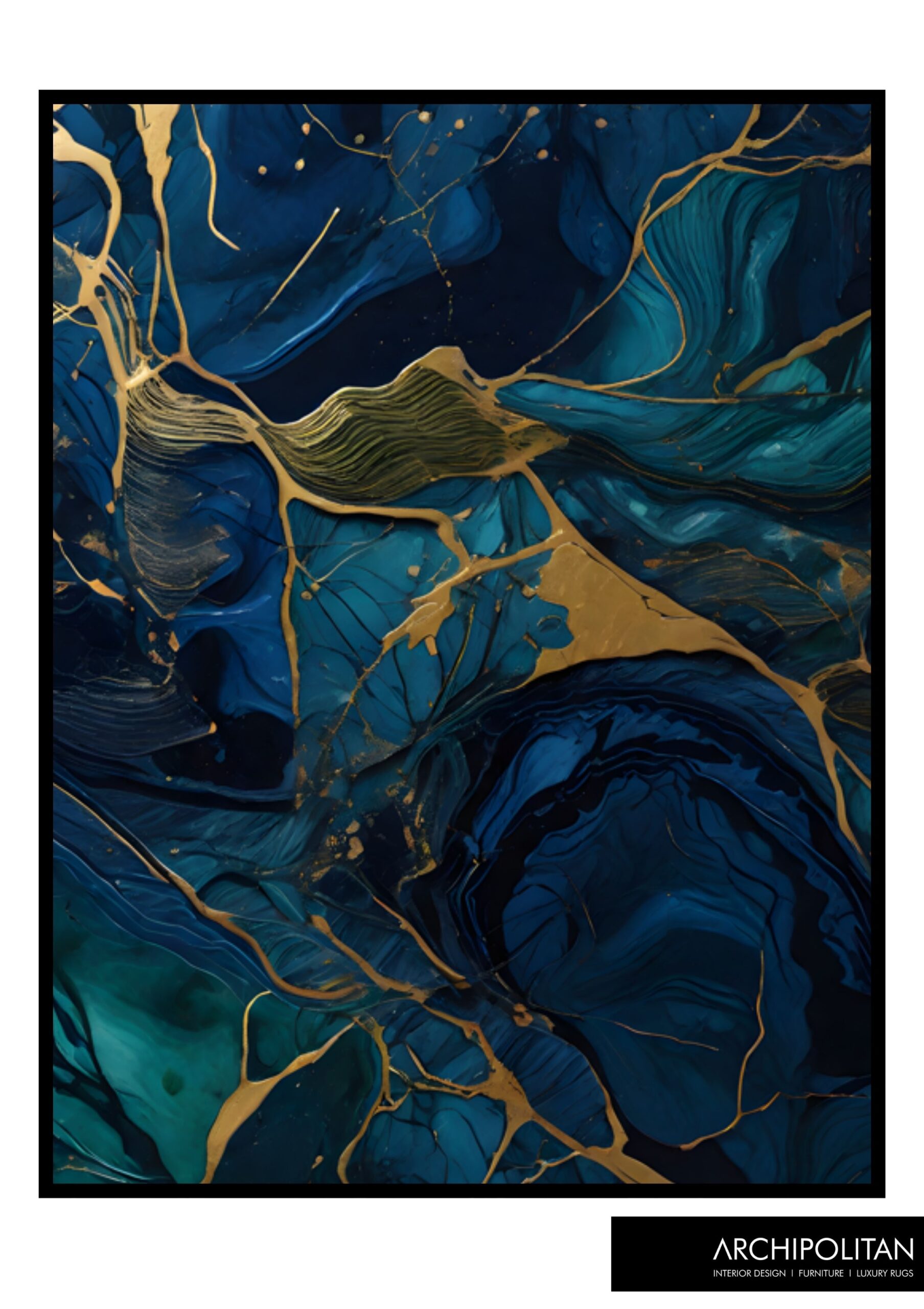 Framed Canvas Print – Navy, Green & Gold Marble 7