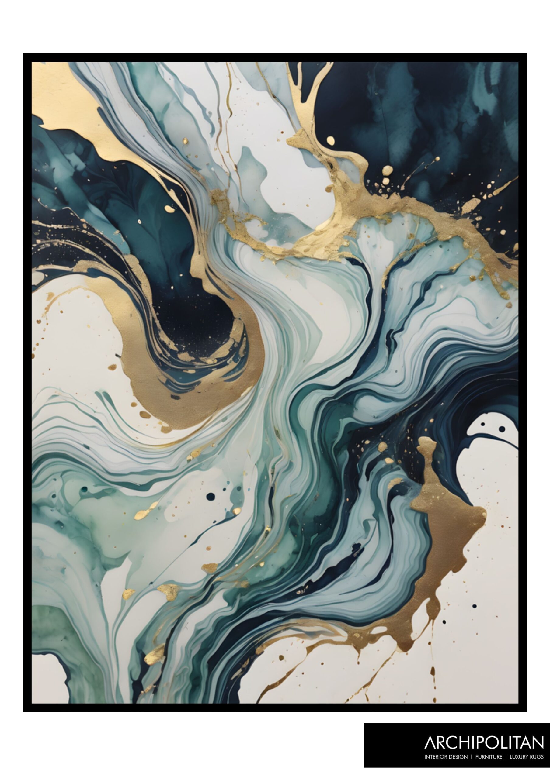 Framed Canvas Print – Pouring Art Blue & Gold 1