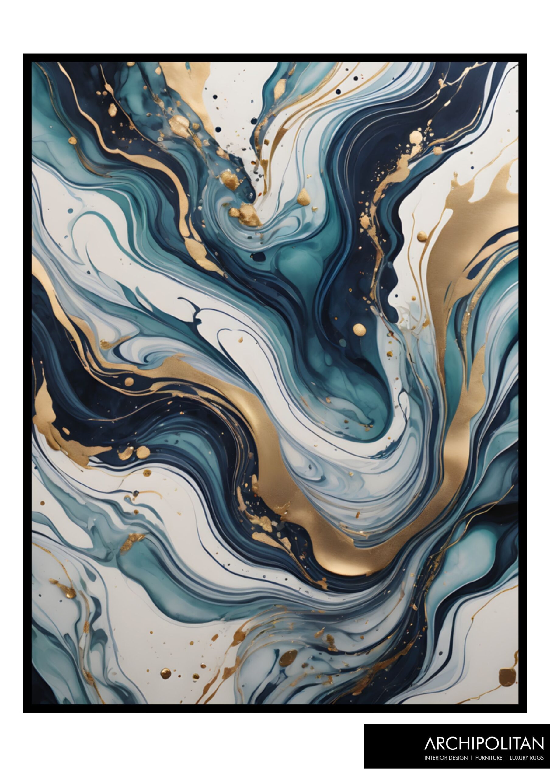 Framed Canvas Print – Pouring Art Blue & Gold 8