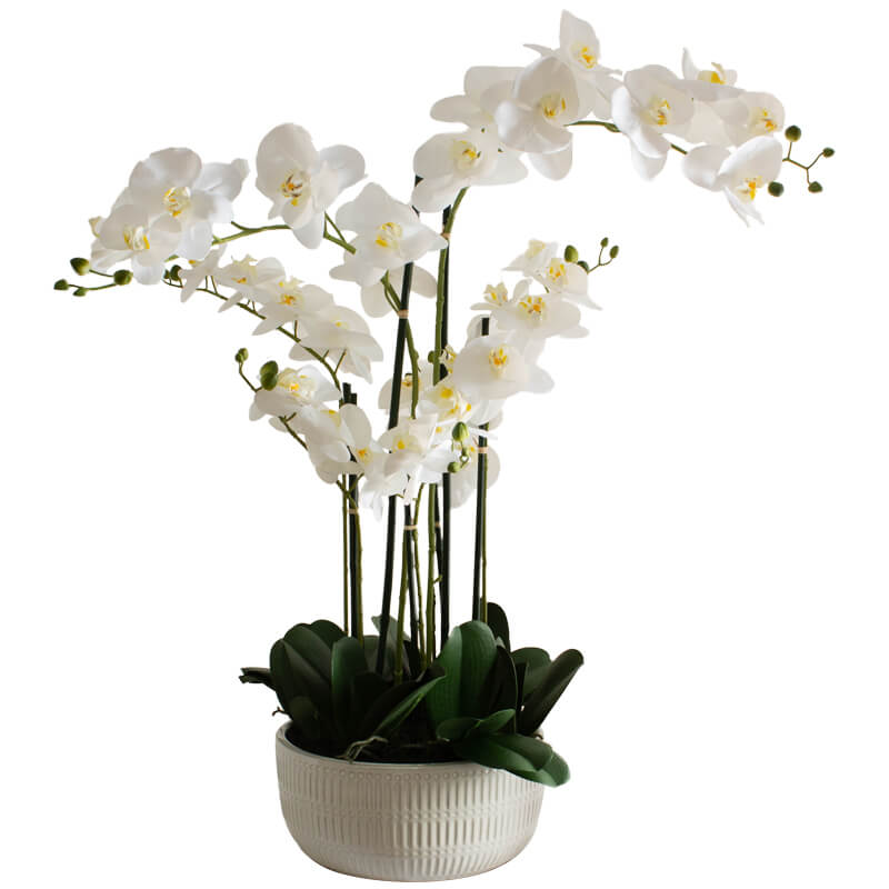 Height: 84cm Max: 81cm Material: Plant Polythene and Ceramic pot Care: Hand Wash With Warm Soapy Water Pot: Height: 14cm Max: 30cm Bottom: 23.5cm